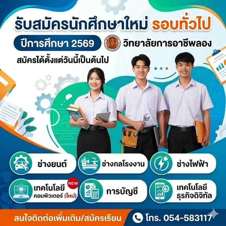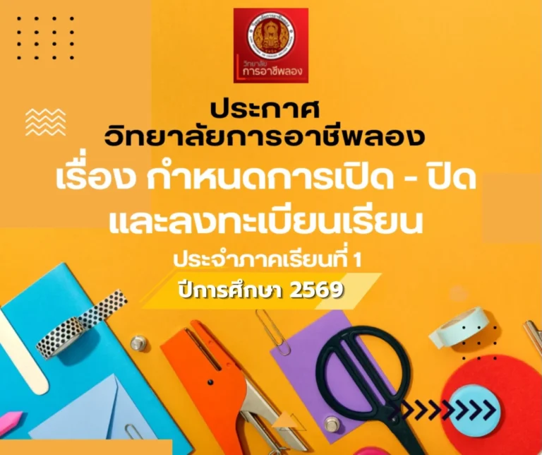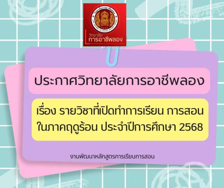 ประกาศ ณ วันที่ 18 มิถุนายน พ.ศ. 2568 ลงนามโดย นายลือชัย ทาทอง ผู้อำนวยการวิทยาลัยการอาชีพลอง