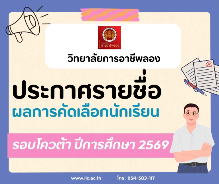 ข่าวประกาศทั่วไป ประกาศวิทยาลัยการอาชีพลองเรื่อง รับสมัครบุคคลเพื่อคัดเลือกเป็นลูกจ้างชั่วคราว ตำแหน่ง เจ้าหน้าที่งานการเงิน08/02/256808/02/2025Piyawat Wongtanaอ่านต่อ→
