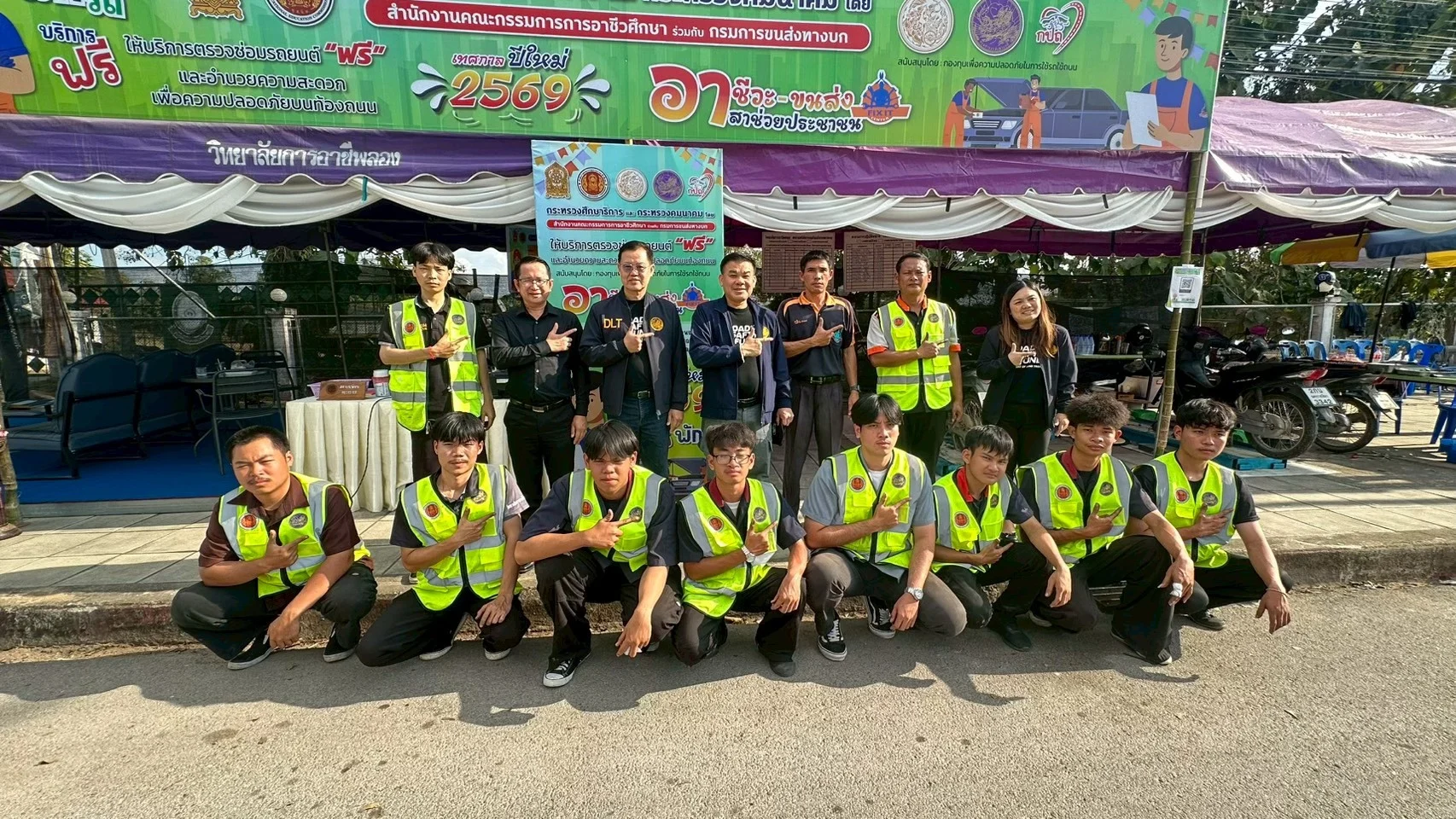นางสาวสุกัญญา หมีบังเกิด ผู้ตรวจราชการกรมการขนส่งทางบก และสำนักงานขนส่งจังหวัดแพร่ ตรวจเยี่ยมจุดบริการ อาชีวะ – ขนส่ง อาสาช่วยประชาชน ช่วงเทศกาลปีใหม่ พ.ศ 2569 (วิทยาลัยการอาชีพลอง)
