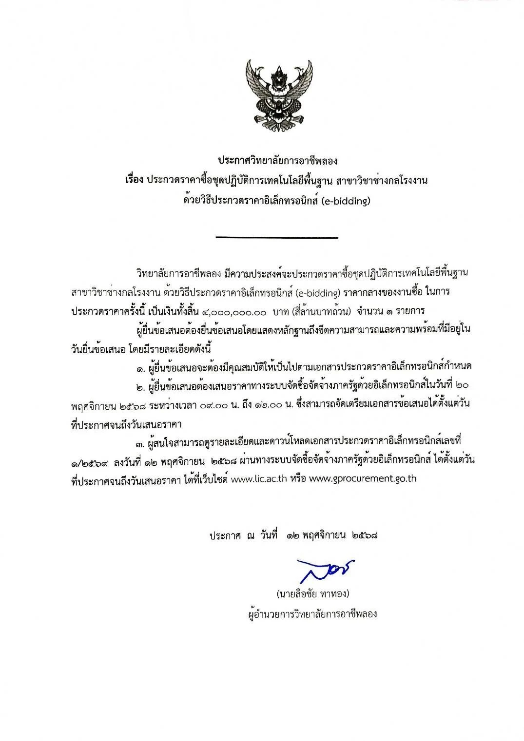 ประกาศประกวดราคาซื้อจัดซื้อชุดปฏิบัติการเทคโนโลยีพื้นฐาน สาขาวิชาช่างกลโรงงาน ด้วยวิธีประกวดราคาอิเล็กทรอนิกส์ (e-bidding)